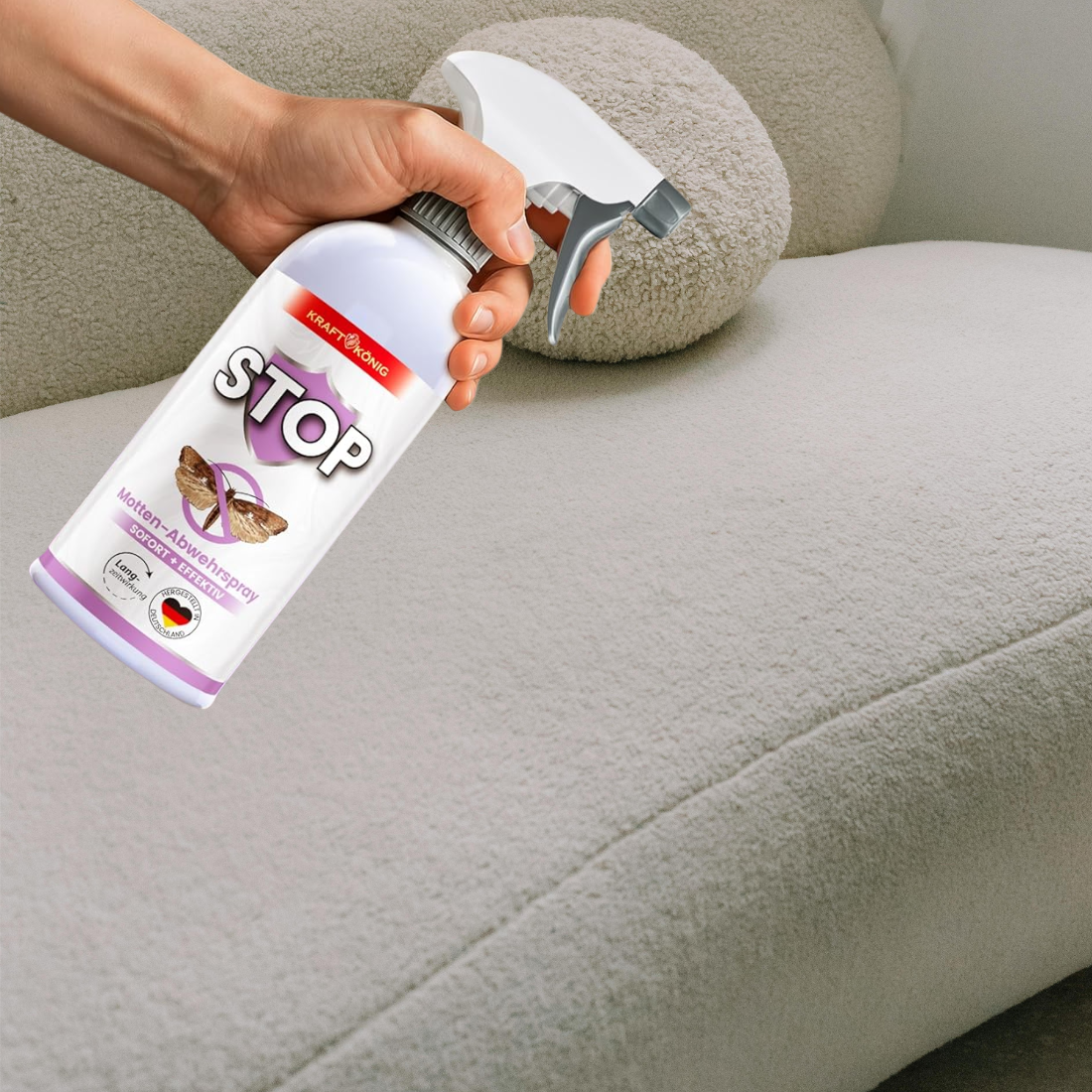 Das KRAFTKÖNIG Mottenspray – 500 ml schützt zuverlässig vor beiden Mottenarten.